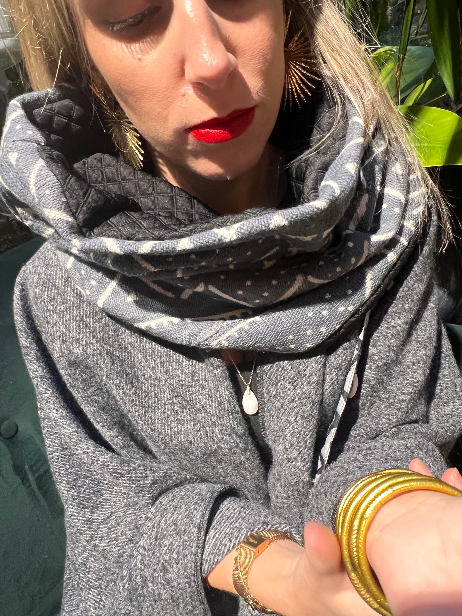 Le snood est une écharpe en forme de tube que vous enfilez par la tête comme un collier.