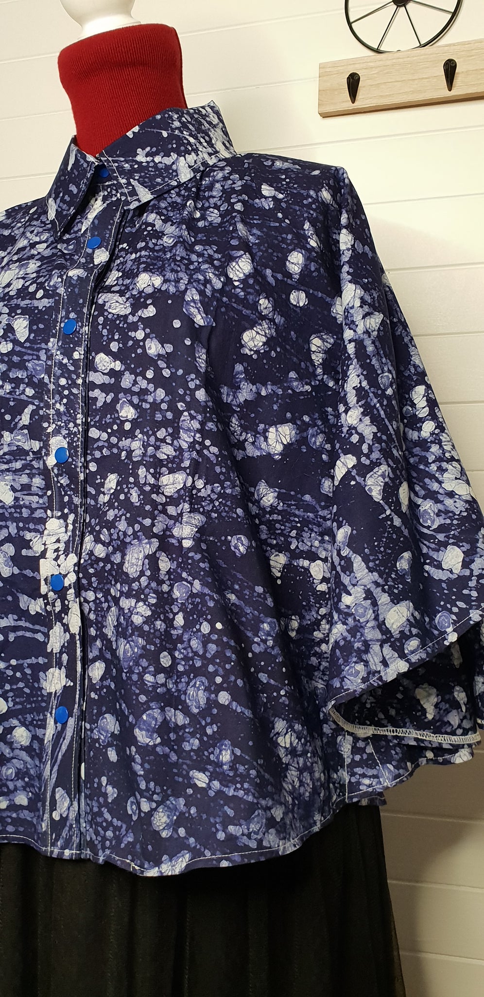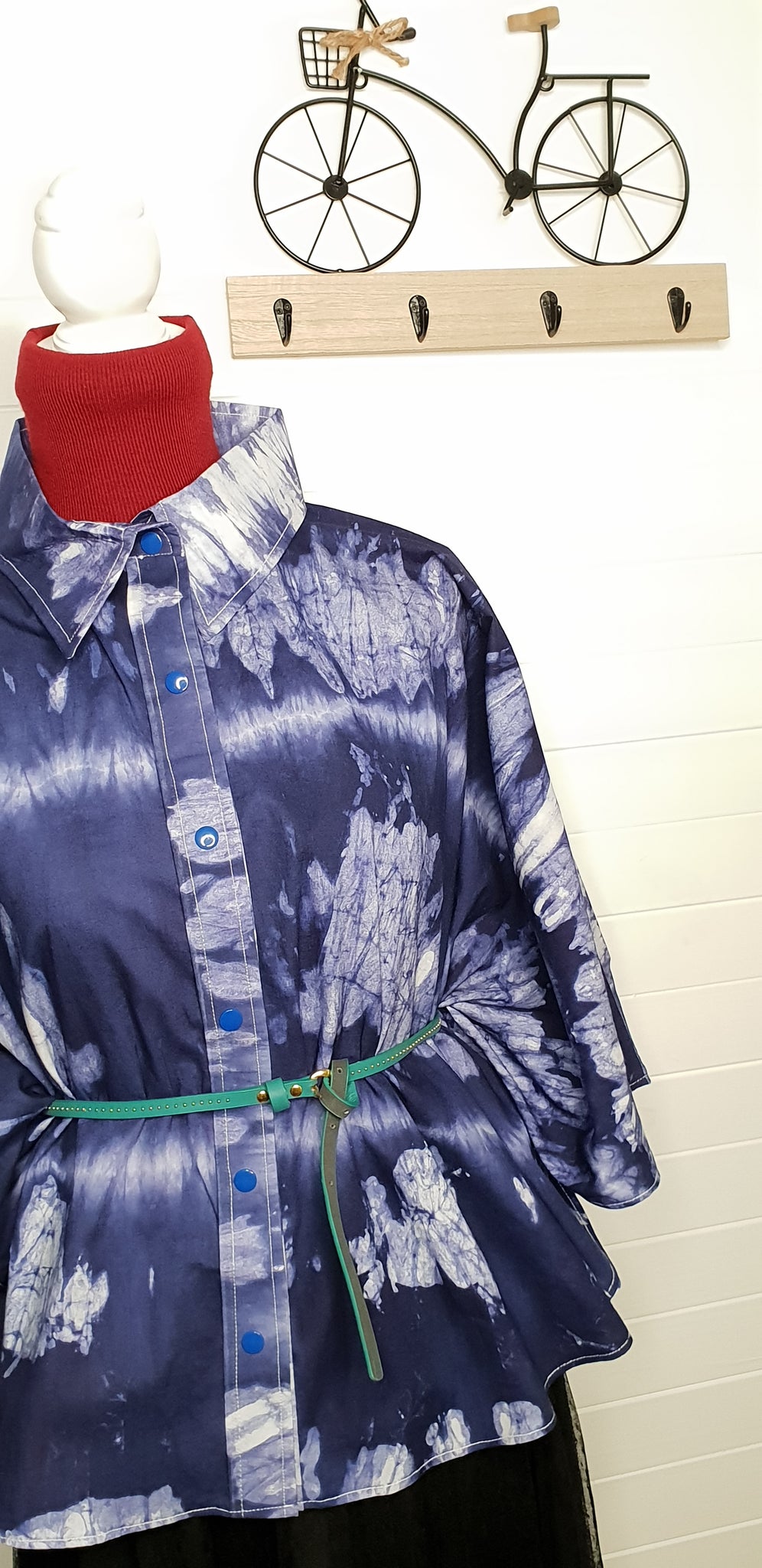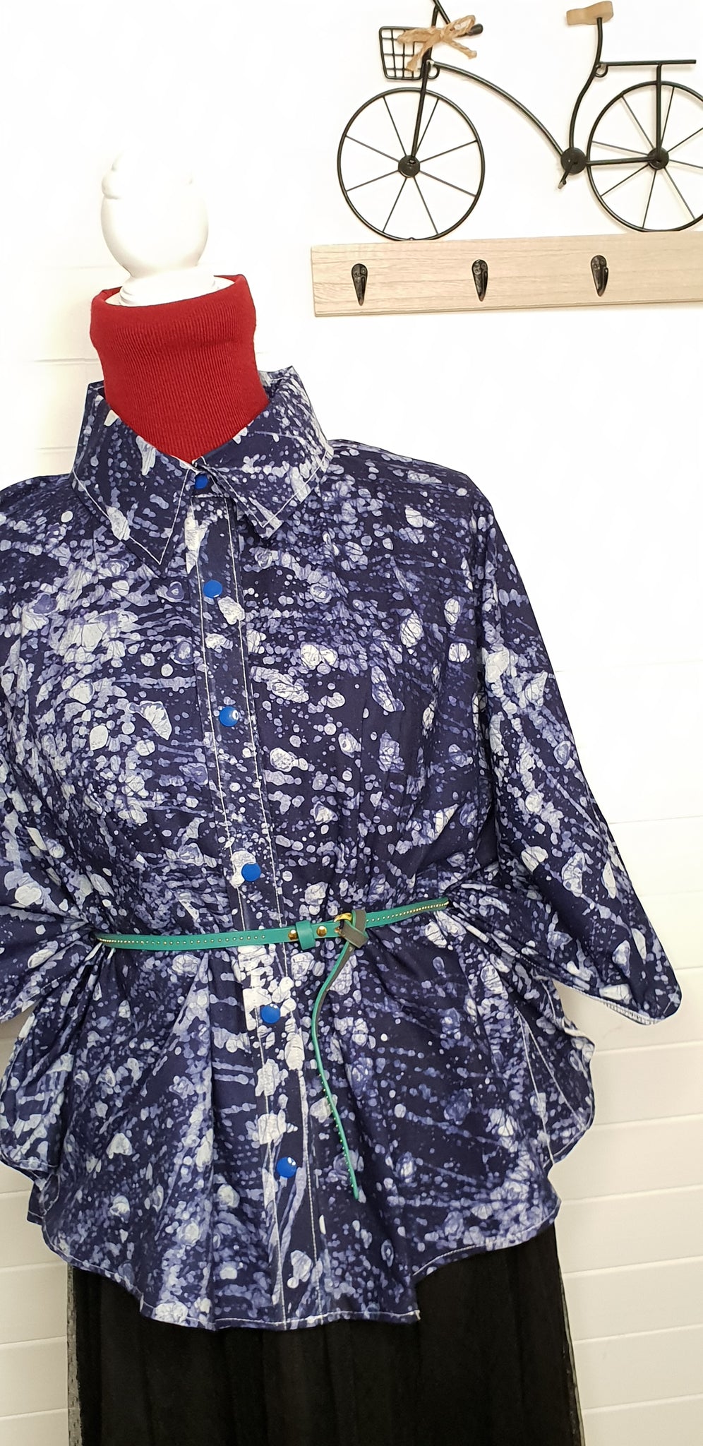 La blouse ELIE naît de mon coup de cœur pour le batik, lors de mon voyage à LOMÉ ( TOGO) ce tissus est de fabrication artisanale.
