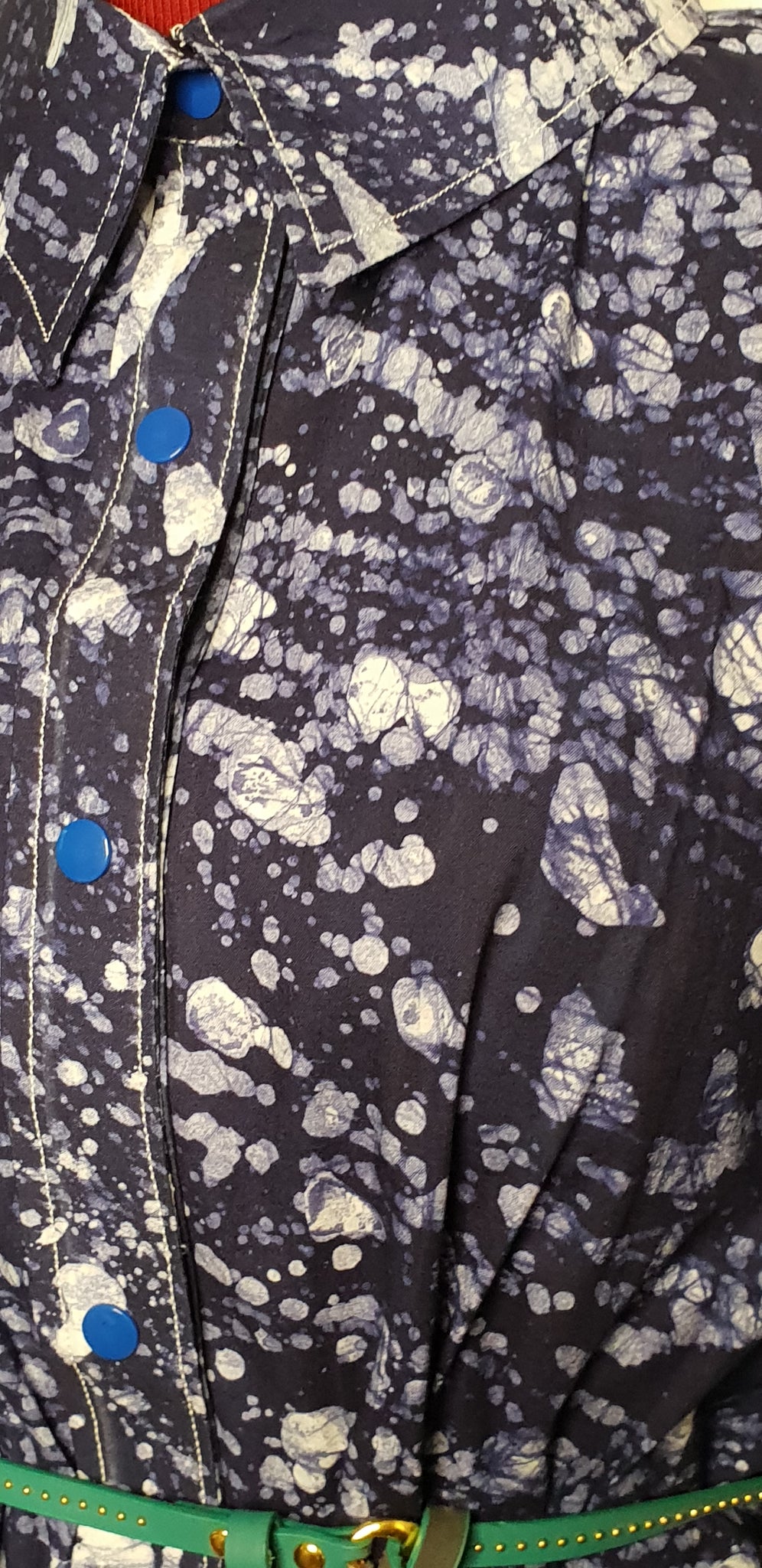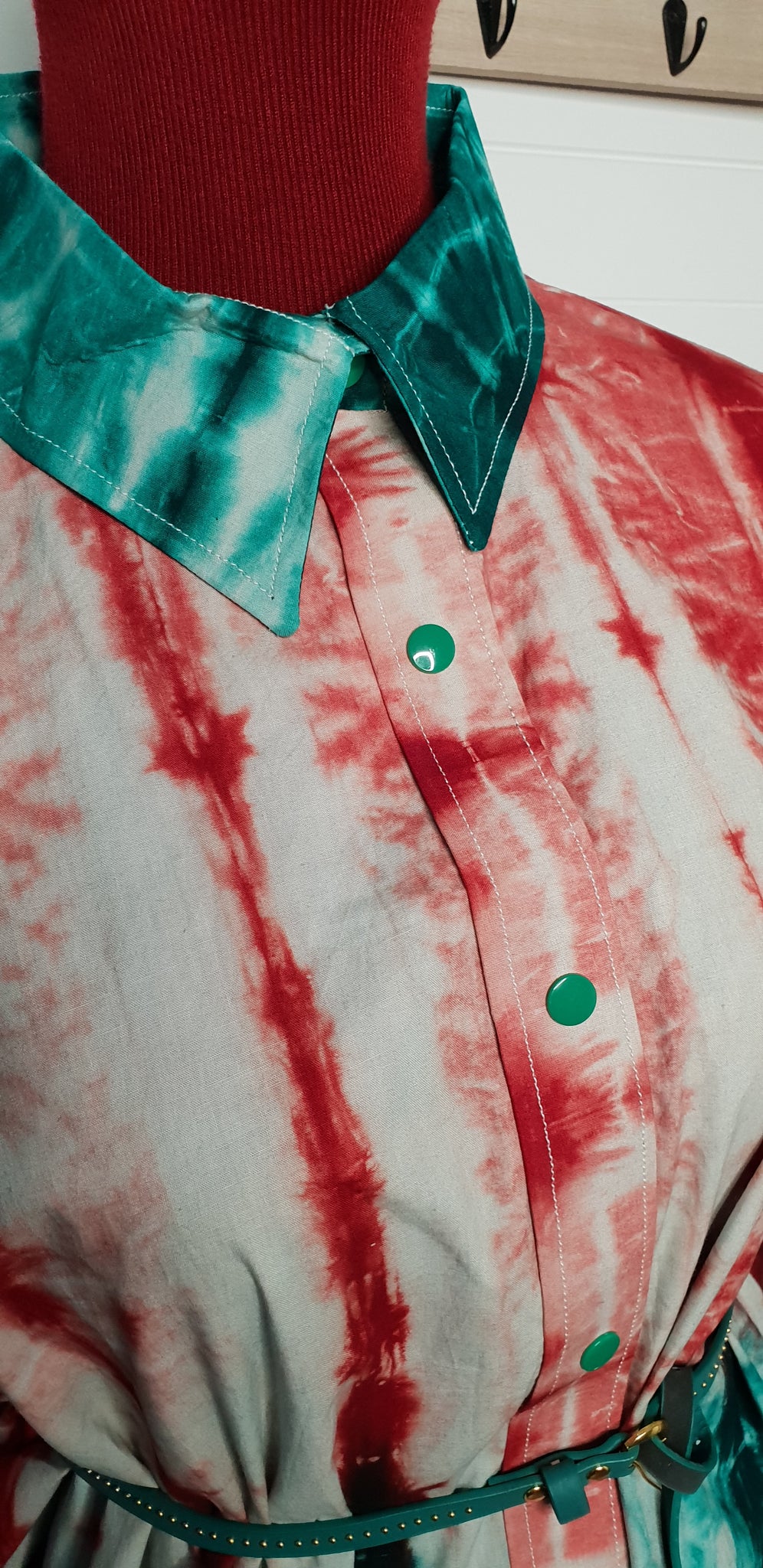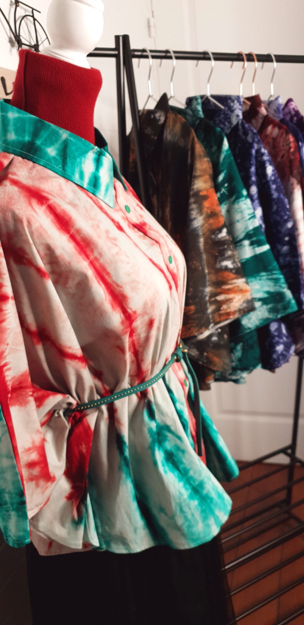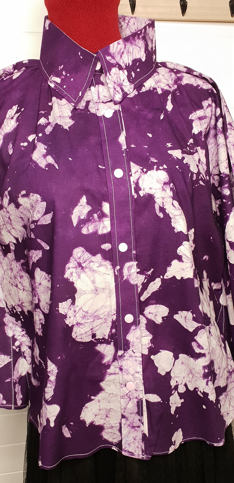 La blouse ELIE naît de mon coup de cœur pour le batik, lors de mon voyage à LOMÉ ( TOGO) ce tissus est de fabrication artisanale.
