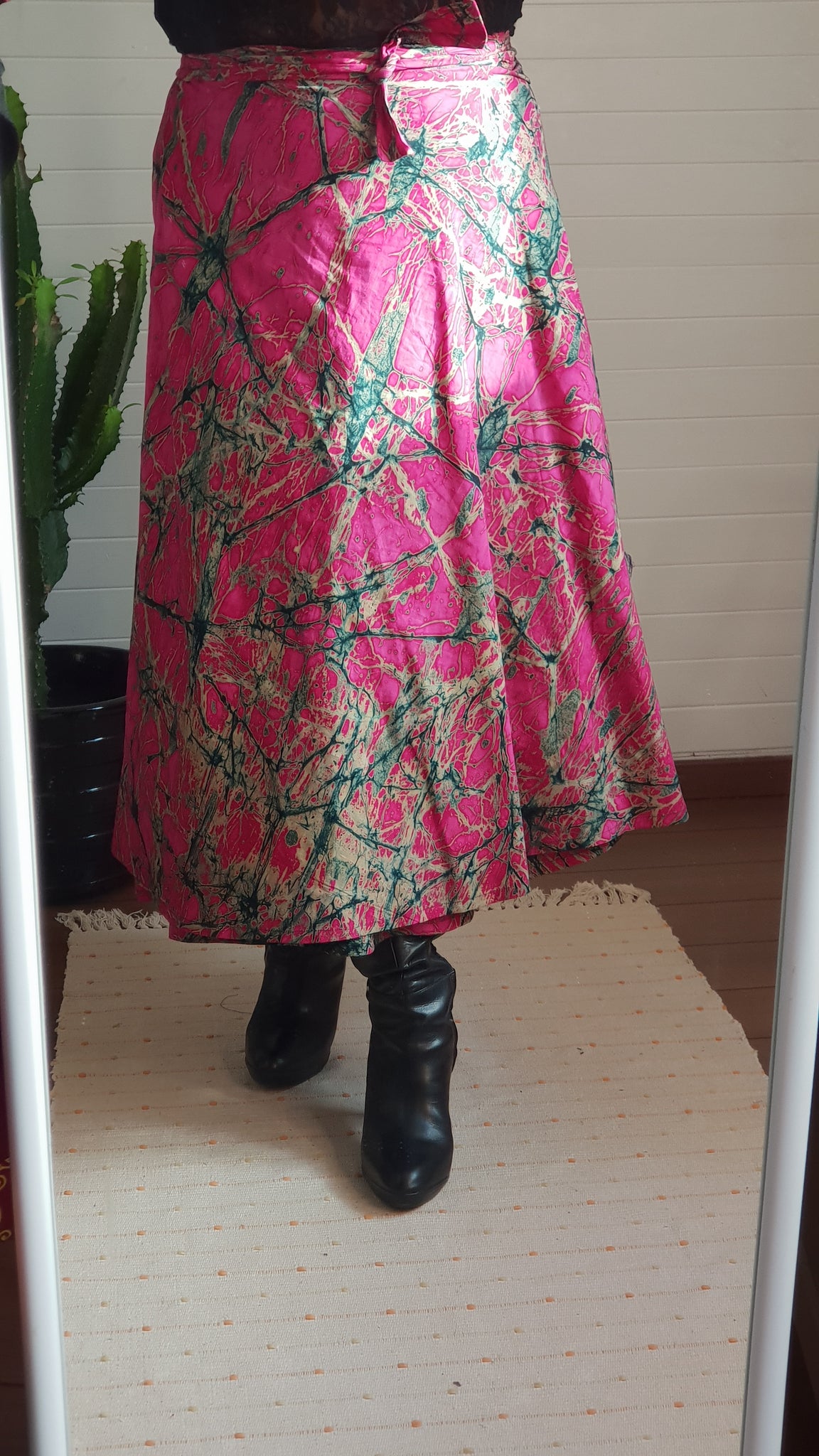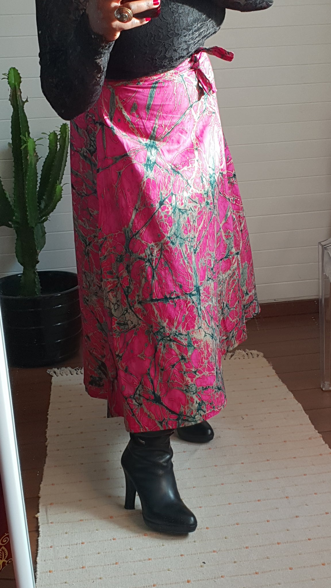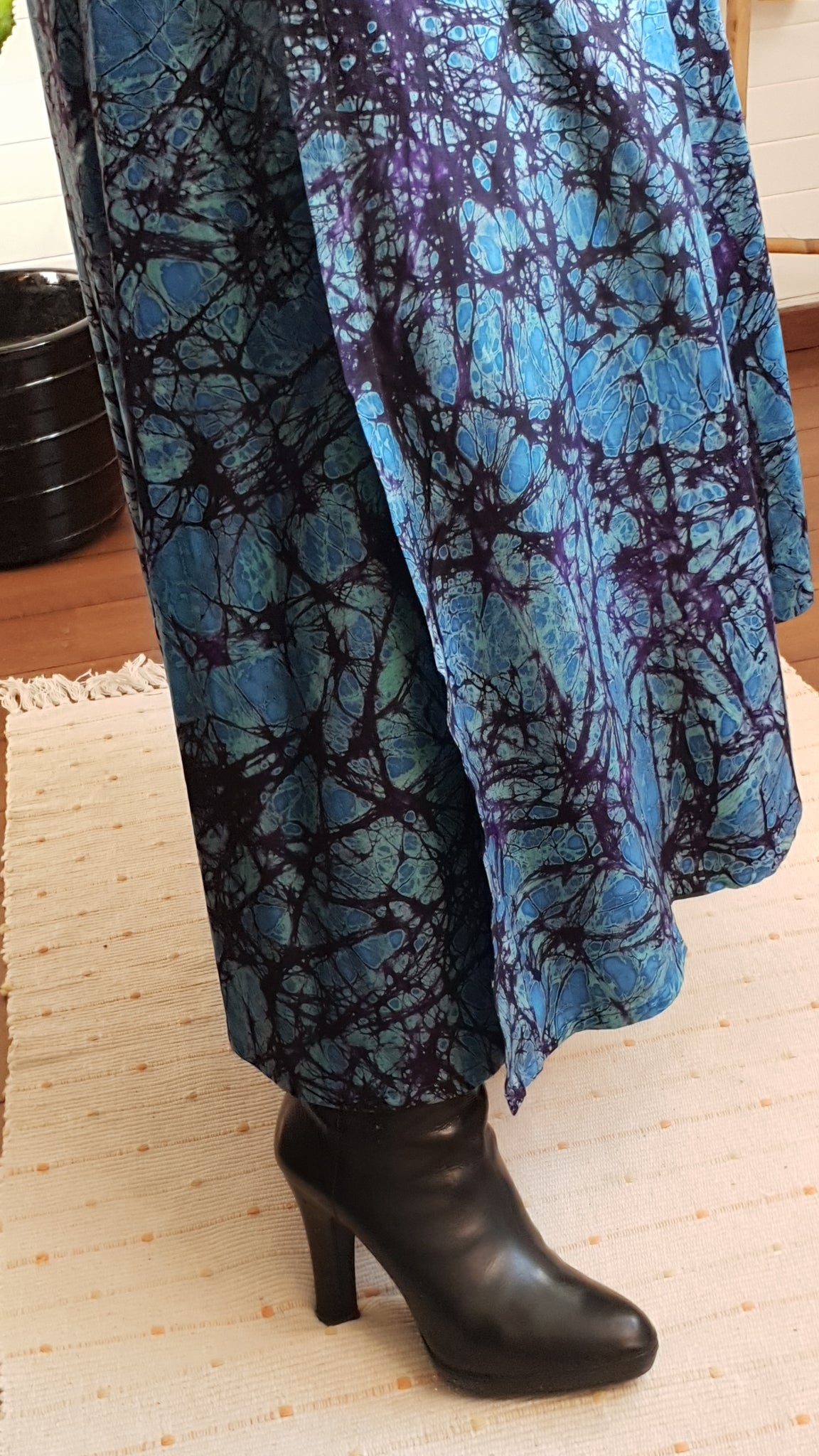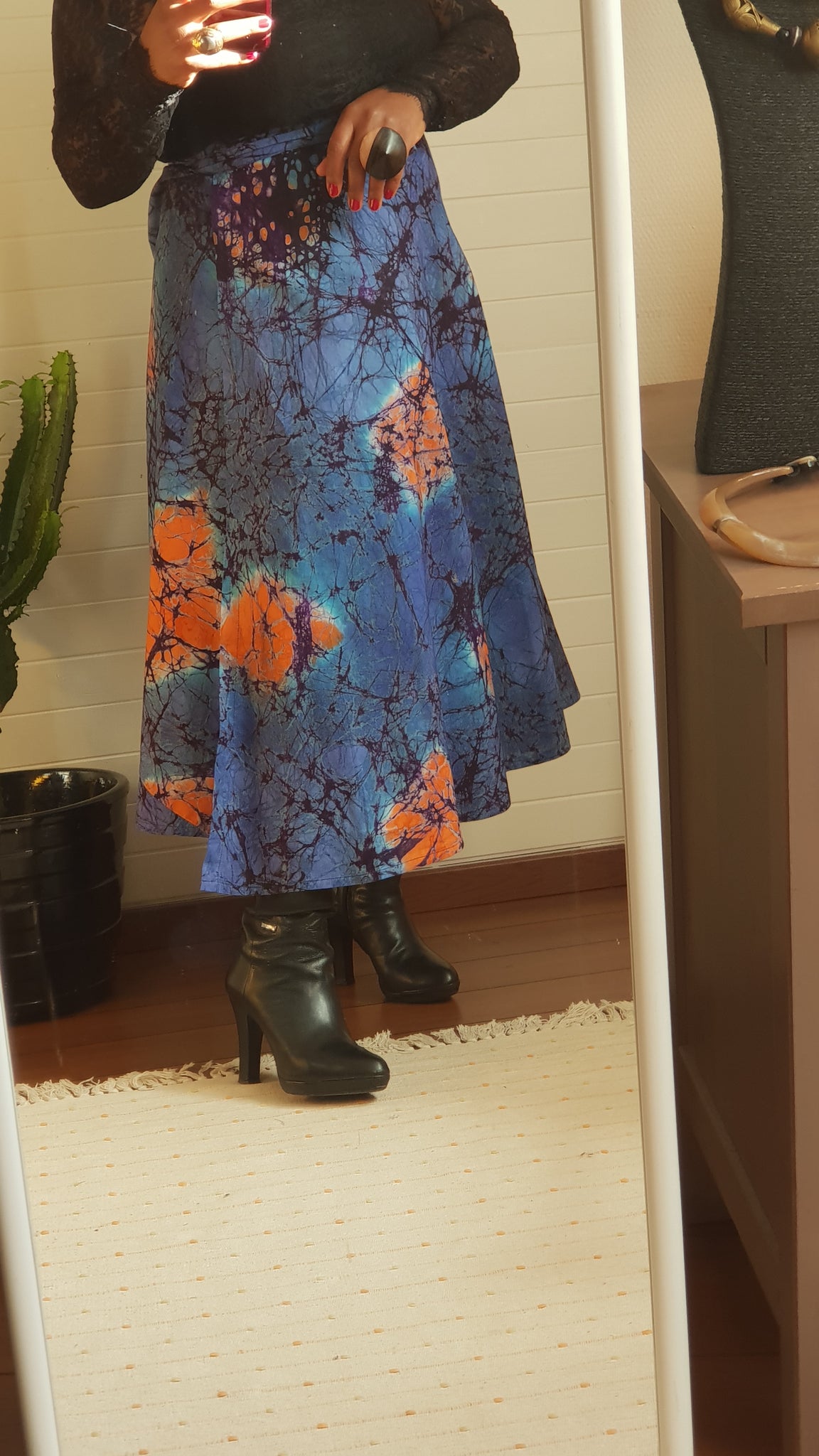 Notre jupe BOBY est porte feuille elle épouse vos formes, faite en coton teint à la main par nos artisans au TOGO ce qui donne ce jolie batik au couleurs chatoyantes.